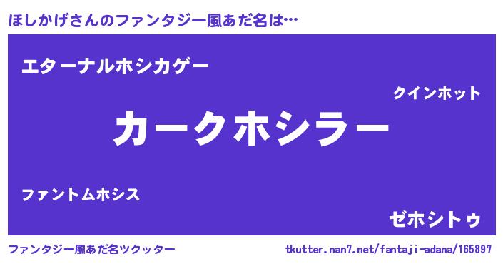 | 意味不明あだ名 | 『ほしかげフォーエバー』『自称ほしかげ』 |