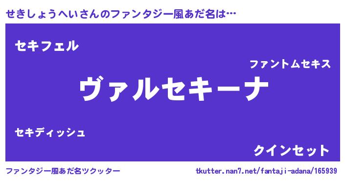 | 意味不明あだ名 | 『住所不定無職せきしょうへい(14歳)』 |