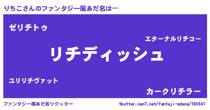 | 男性向けラノベタイトル風あだ名 | 『りちこという概念が存在しない退屈な世界 』 |