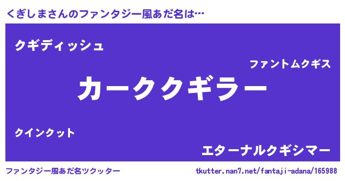 | 自動車の名前っぽいあだ名 | 『フェクーギ』『デミク』『ククア』 |