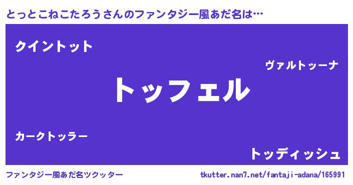 とっとこねこたろうさんのファンタジー風あだ名をツクッター!