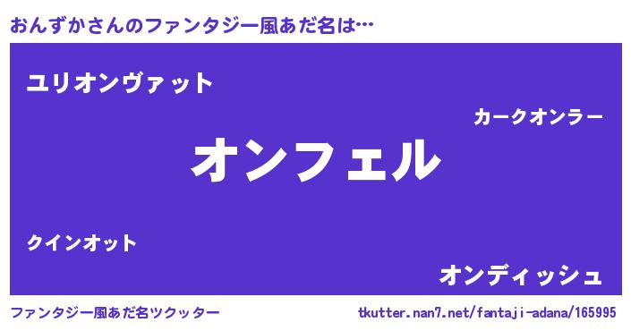 | ヘコむあだ名 | 『おんっふぃ~』『おんずか(苦笑)』 |