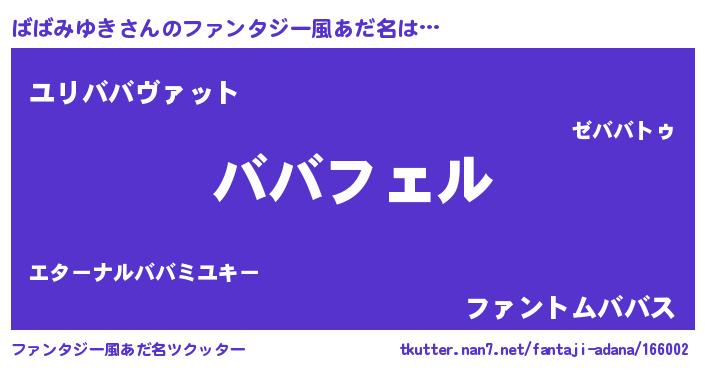 ばばみゆきさんのファンタジー風あだ名をツクッター!