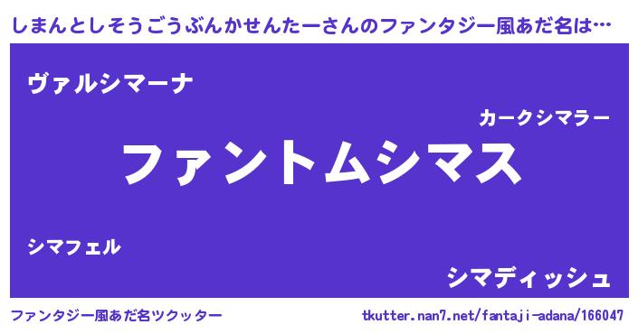 | 意味不明あだ名 | 『とにかく怪しいしまんとしそうごうぶんかせんたー』 |