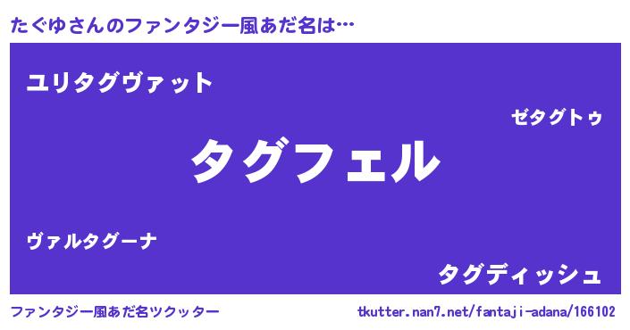 | ヘコむあだ名 | 『たぐもー』『たぐゆ(爆)』『たぐを』 |