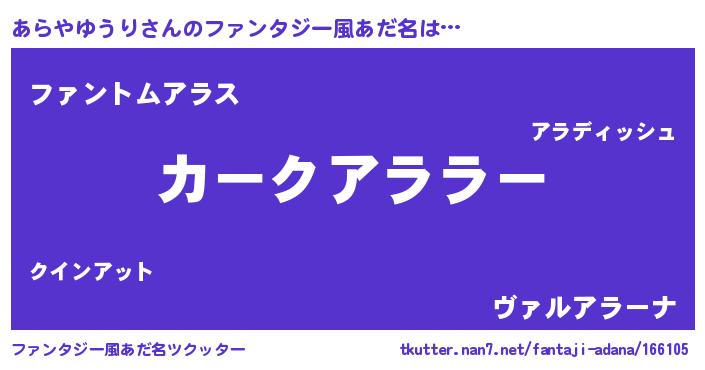 | ヘコむあだ名 | 『あらぷりん』『あらやゆうり(爆)』 |