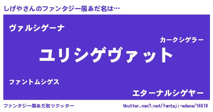 | 伝説のあだ名 | 『秘められし陰陽師しげや』 |