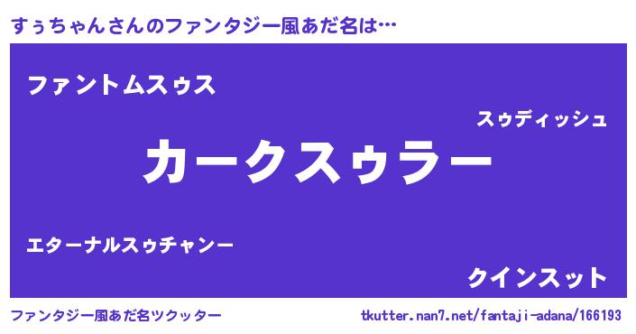 | ヒーロー風カッコイイあだ名 | 『幻影騎士スゥ』『友情の使者すぅちゃん』 |