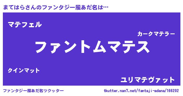 | 女子向けラノベタイトル風あだ名 | 『まてはら様がみてる』『まてはら恋絵巻』 |