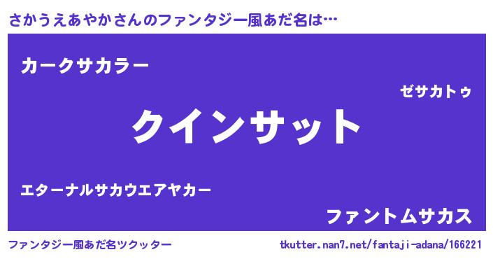 | 欧米人風あだ名 | 『アンジェラ・さかうえあやか』 |