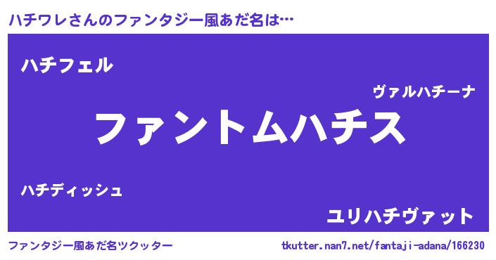 | ポケモン風あだ名 | 『ヒハチワレ』『ハチチュウ』 |