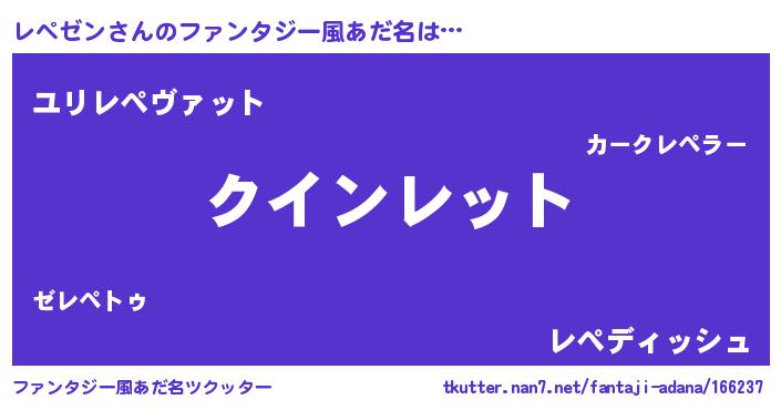 | 伝説のあだ名 | 『救世主となる占い師レペゼン』 |