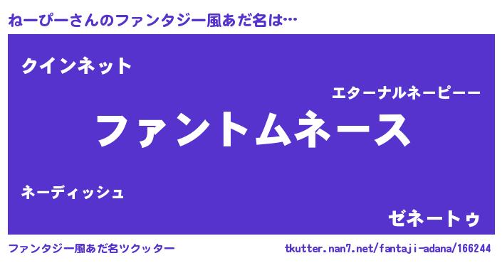 | 自動車の名前っぽいあだ名 | 『ネルトーパン』『フィッネ』 |