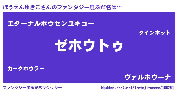 | 意味不明あだ名 | 『自称ほうせんゆきこ』 |