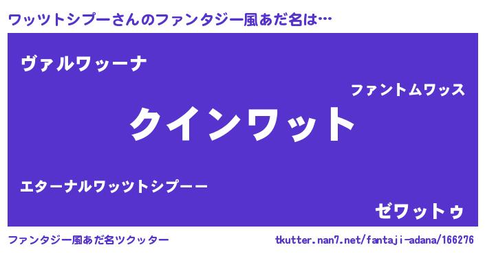 | 女子向けラノベタイトル風あだ名 | 『ワッツトシプー恋絵巻』 |
