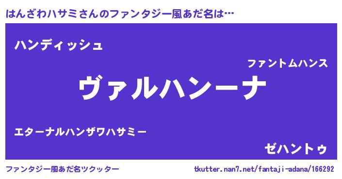 | 意味不明あだ名 | 『住所不定無職はんざわハサミ(7歳)』 |