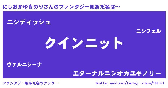 | 男性向けラノベタイトル風あだ名 | 『ノーゲーム・ノーニシオカユキノリ』 |