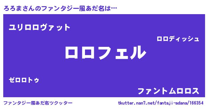 | ヘコむあだ名 | 『ろろふぇ~』『ろろっちょ』『牛乳』 |