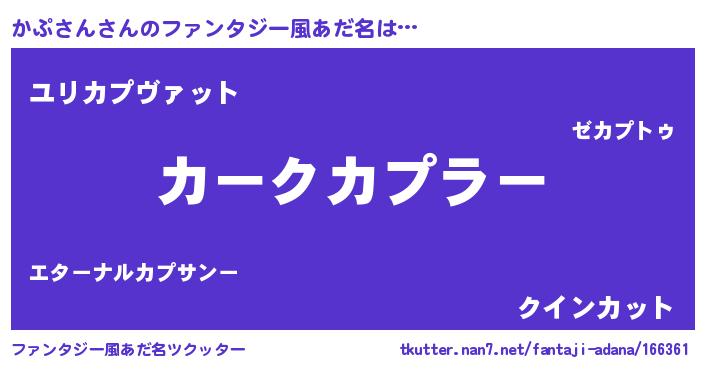 | 欧米人風あだ名 | 『アンジェラ・かぷさん』 |