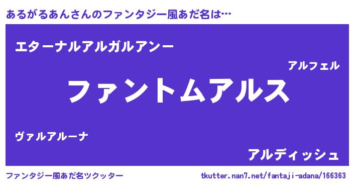 あるがるあんさんのファンタジー風あだ名をツクッター!