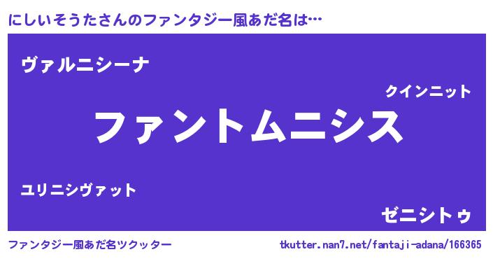 | 男性向けラノベタイトル風あだ名 | 『ダンジョンににしいそうたを求めるのは間違っているだろうか』 |