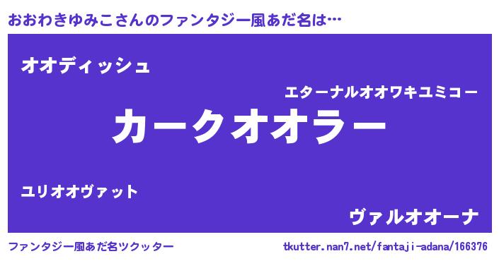| ヒーロー風カッコイイあだ名 | 『ネオオオワキユミコ』『仮面オオダー』 |