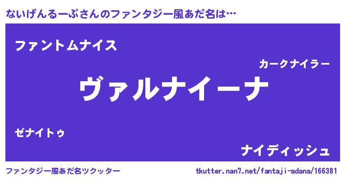| 男性向けラノベタイトル風あだ名 | 『この素晴らしい世界にないげんるーぷを!』 |