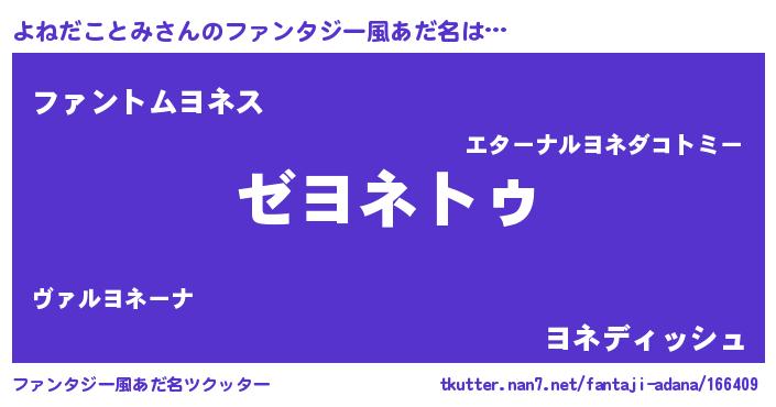 | 伝説のあだ名 | 『解き放たれた僧侶よねだことみ』 |
