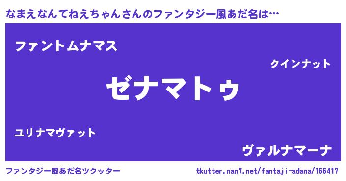 | 意味不明あだ名 | 『自称なまえなんてねえちゃん』 |