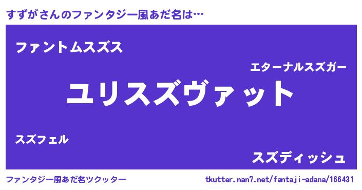 | ヒーロー風カッコイイあだ名 | 『天弓騎士スズ』『ネオスズガ』 |