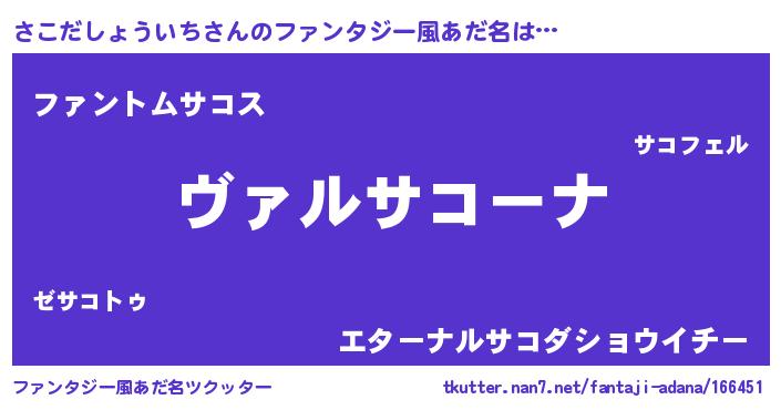 | ヒーロー風カッコイイあだ名 | 『仮面サコダー』『炎刃騎士サコ』 |