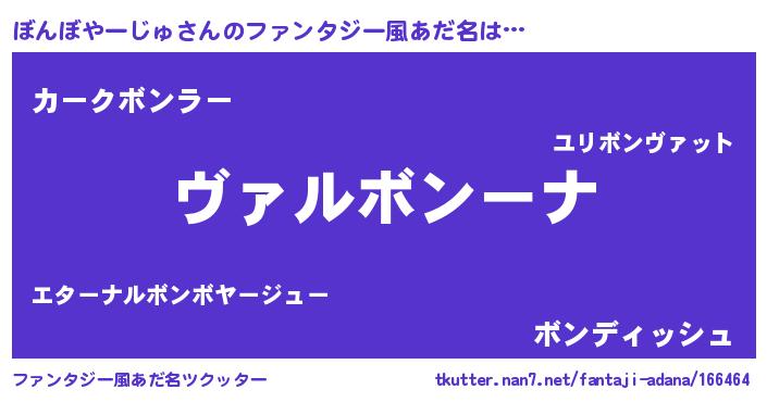 | 男性向けラノベタイトル風あだ名 | 『この素晴らしい世界にぼんぼやーじゅを!』 |