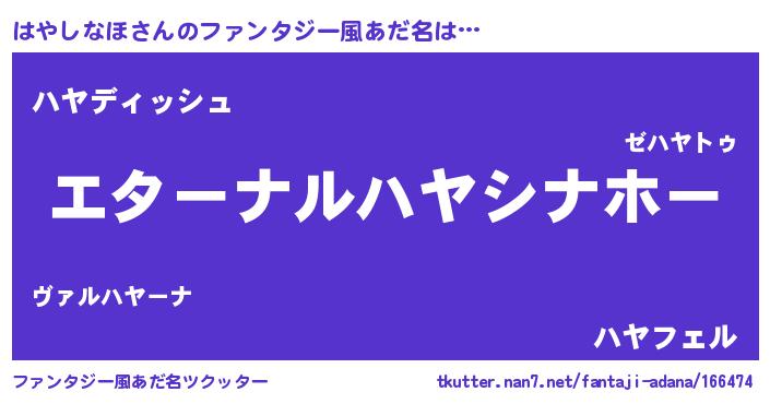 | ポケモン風あだ名 | 『ハヤシダネ』『ゼニハヤ』 |