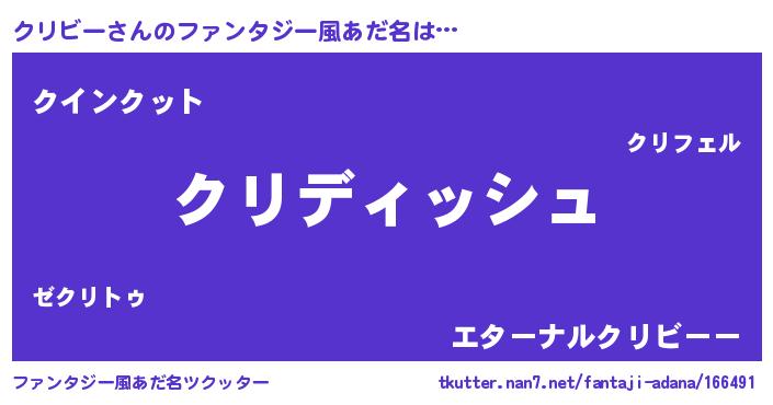 | 男性向けラノベタイトル風あだ名 | 『クリビーという概念が存在しない退屈な世界 』 |