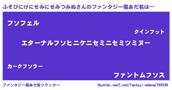 | 意味不明あだ名 | 『ふそひにけにせみにせみつみぬフォーエバー』 |