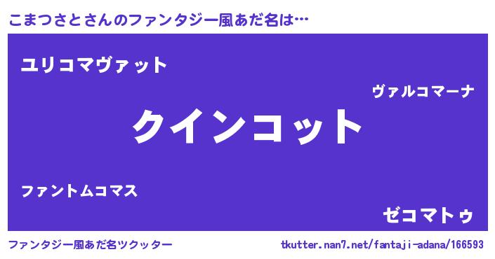 | 男性向けラノベタイトル風あだ名 | 『ノーゲーム・ノーコマツサト』 |