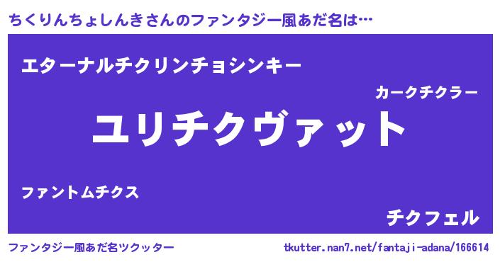 | 男性向けラノベタイトル風あだ名 | 『チクリンチョシンキスレイヤー』 |