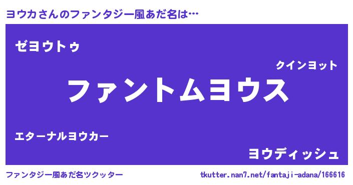 | ヒーロー風カッコイイあだ名 | 『炎刃騎士ヨウ』『超時空戦士ヨウカ』 |