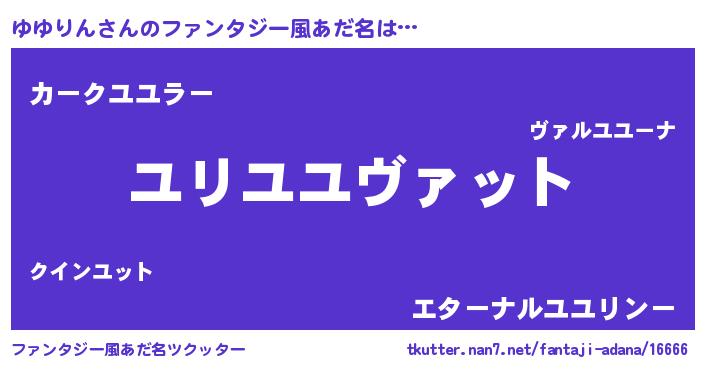 | ポケモン風あだ名 | 『ユユキング』『ユユゴンZ』 |