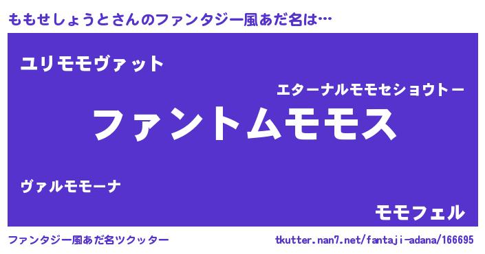 | ポケモン風あだ名 | 『ヒモモセショウト』『モモゴンZ』 |