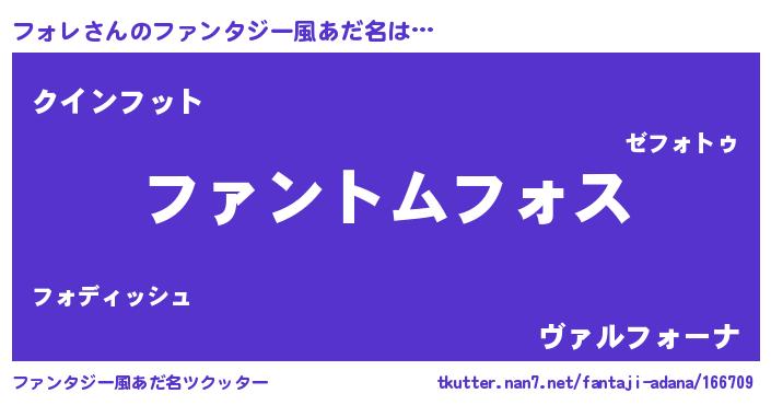 | 女子向けラノベタイトル風あだ名 | 『フォレは平凡を望む』『闇のフォレ』 |