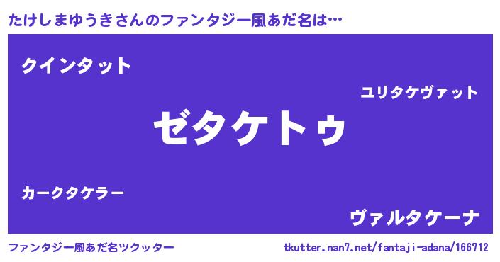 | 女子向けラノベタイトル風あだ名 | 『たけしまゆうきなんてお断りですっ。』 |