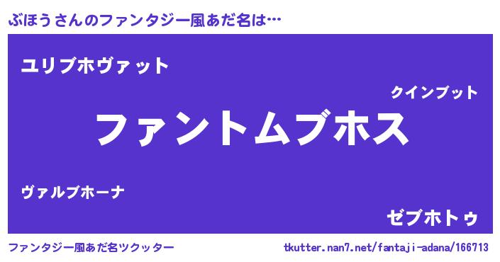 | 意味不明あだ名 | 『とにかく怪しいぶほう』『自称ぶほう』 |
