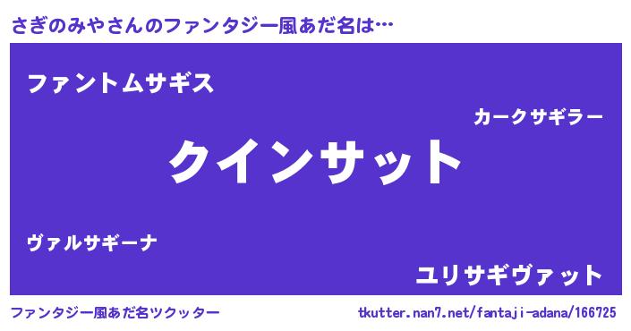 | ヒーロー風カッコイイあだ名 | 『天空の使者さぎのみや』『暗黒騎士サギ』 |