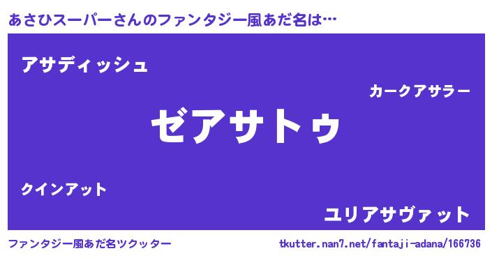 | ポケモン風あだ名 | 『アサセウス』『ゼニアサ』 |