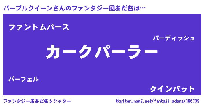 | 意味不明あだ名 | 『とにかく怪しいパープルクイーン』 |