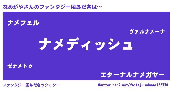 | ヘコむあだ名 | 『なめがや(小並感)』『なめにゅー』 |