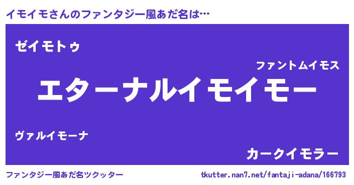 | 意味不明あだ名 | 『イモイモフォーエバー』『自称イモイモ』 |