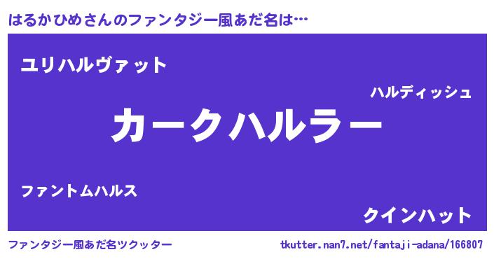 | 欧米人風あだ名 | 『はるかひめ・ステッグマイヤー』 |