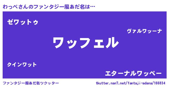 | 意味不明あだ名 | 『ペロリンわっぺ』『自称わっぺ』 |